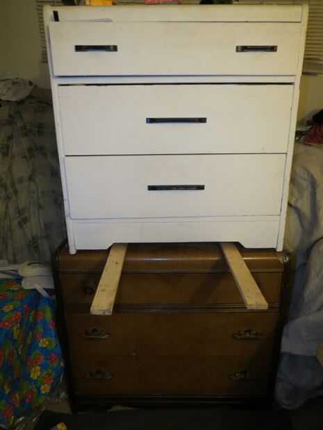 Mi ex había dejado dos aparadores en la habitación que habíamos encontrado en la calle en los años (éste era su oficio). Iba a instalar ganchos en la parte posterior de ellos, pero entonces se me ocurrió que, como un aparador, es sólo una base disfrazada!!!