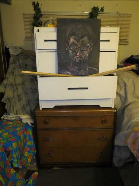 Apilar los dos aparadores y me abrió el cajón de abajo. Acabado. Elegir un cajón, abrirlo, perfecto de caballete. A atar la lona alrededor de la parte posterior y usted es buenos ir con cualquier tamaño que desee, cualquier altura deseada!. He trabajado 6 x 3' y 4' funciona como un sueño. El labio en el cajón mantiene la tela se deslice demasiado.