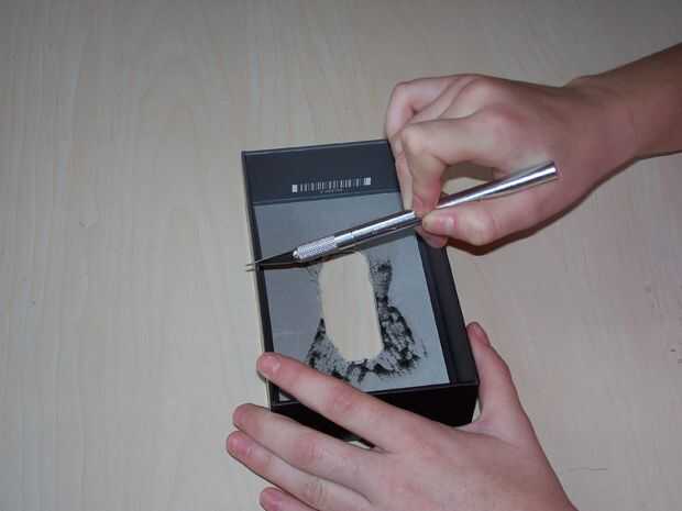 7. corte un pequeño agujero en el centro del borde inferior de la parte posterior de la caja para el cable USB