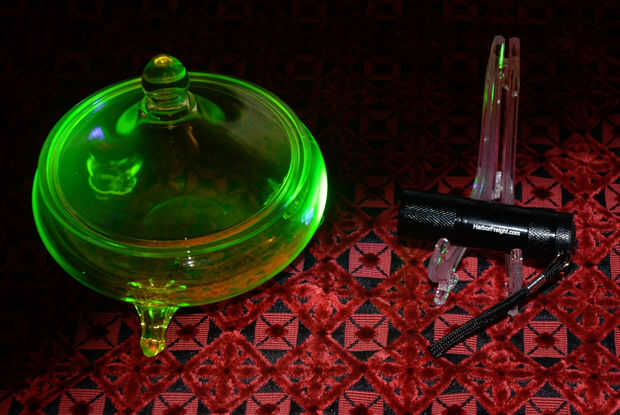 Ahora la razón hacer linternas UV es que recoger el cristal de uranio y vivir en una de las bandas antiguas también golpeó un montón de ventas de yarda. El problema es que hay un montón de vidrio verde en los años 60 y comienzos de los 70 que pudiesen tener las mismas características color verdadero vidrio de uranio. Incluso depresión vidrio varía mucho en color verde. El verde es en realidad el óxido de hierro no el uranio. Es fácil decir un buen pedazo de Canarias victoriana e incluso cierto vaselina tiene una mirada particular pero al llegar dentro de la Copa verde más oscuro de la depresión entonces a veces se pone un poco duro y realmente sólo importa como se ve en mi gabinete bajo las luces de UV de china.