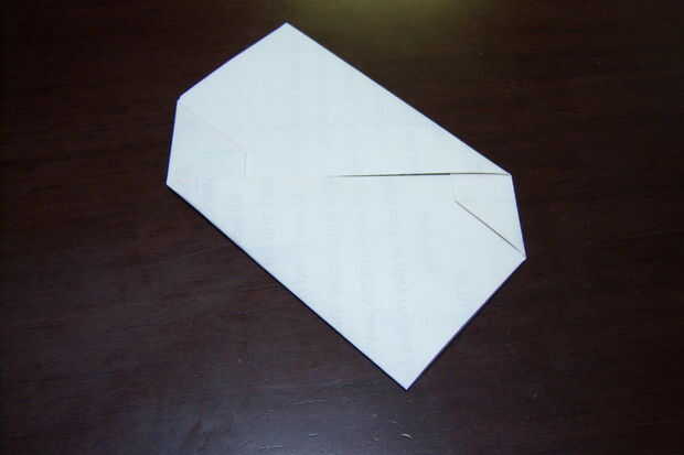 Su carta deberá verse ahora como este [Fig. 3]. Las lengüetas mantienen la carta cerrada. Sin embargo, te sugiero poner un trozo de cinta por el medio si usted va a enviarlo via USPS, ya que sus máquinas (o portadores del correo) puede abrir de otra manera.
