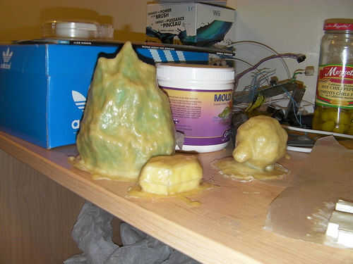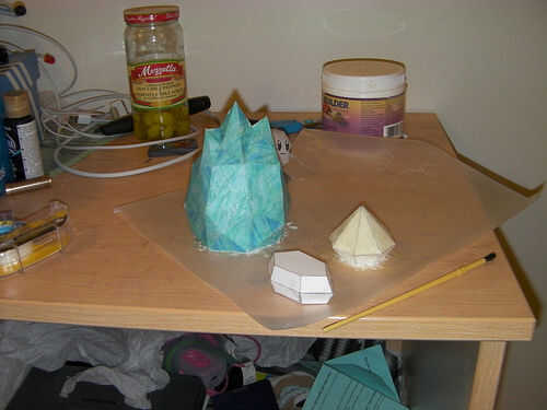 Bueno lo primero lo primero! Usar su Molde constructor aplique una primera capa muy delgada sobre tu papercraft colocándolo en el papel de cera . Este es el paso más importante en el proceso de! Asegúrese de que aplicar una capa uniforme a todos los bordes circundantes, alisando hacia fuera todos los huecos o burbujas que puedan surgir. Deje que la primera capa de constructor del molde seco por al menos 30 minutos * y luego aplique una porción más generosa de MB en el arte. Seguir haciendo esto por un mínimo de 7 capas, dejando que cada uno seco durante al menos 30 minutos. Al final obtendrás una bonita capa gruesa oro de látex de caucho alrededor de la construcción.