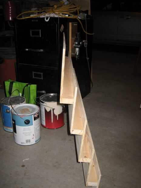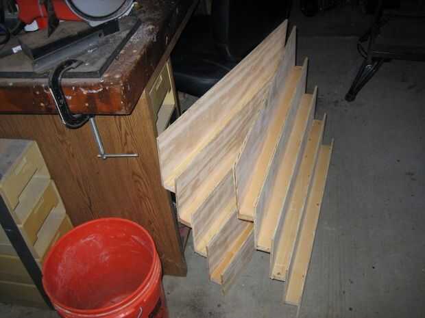 Básicamente vas a armar estas piezas en un par de peldaños, con la madera contrachapada de superposición de 1/2" madera en la parte superior de cada escalonado.
