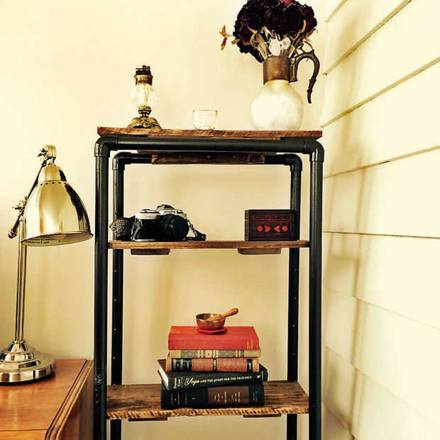 Tardó más de un año de buscar en librerías para finalmente encontrar uno que nos gustó sin embargo cuando vi el precio casi caí. Estaba hecha de tubos de acero y madera reciclada granero, lo que habría sido considerado basura hace diez años, fue montado en una librería cuesta una pequeña fortuna hoy en día. Entonces pensé, puedo hacerlo mejor y más barato.