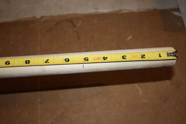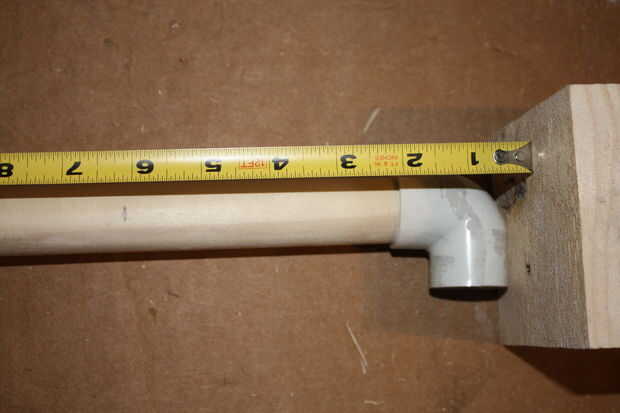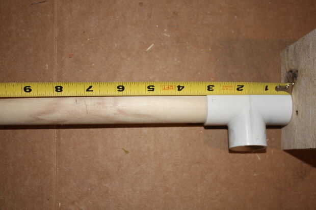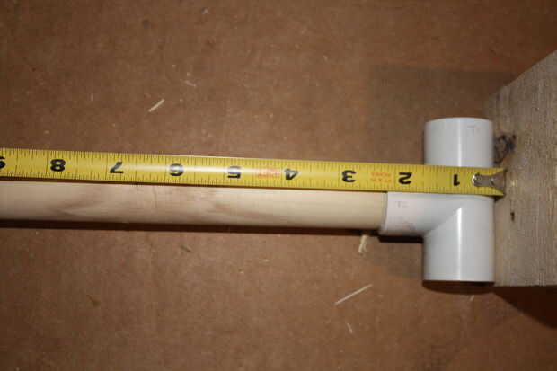 Este paso requiere una macro perspectiva en la construcción de la estantería (ver diagrama). Para el espacio que quiero poner esta estantería, necesito un marco que es no más de 20 pulgadas de ancho. Teniendo en cuenta que es como las clavijas de madera y los empalmes de PVC de 20 pulgadas, es necesario que nos corte las espigas horizontales longitud que cuando se combina con los acoplamientos de PVC en los extremos es igual a 20 pulgadas.