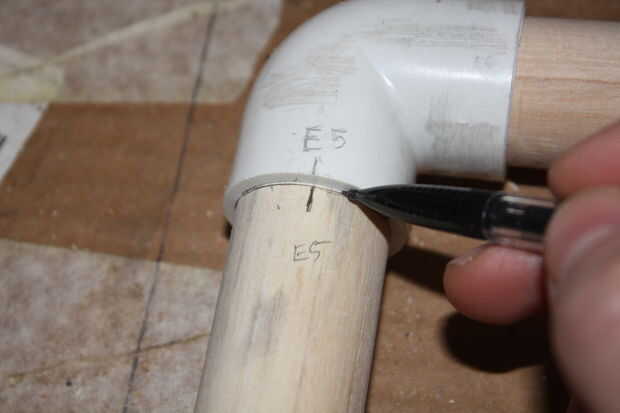 Una vez que esté seguro de su longitudes de tubo, cortadas las espigas a la medida con una sierra para cortar ingletes.