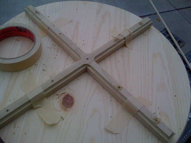 Otro punto: el estante superior tiene tres "patas", pero la cruza tiene cuatro brazos. Debe entonces, ¿cómo alinean? Sólo alineó un brazo con una de las patas y dejó en eso.