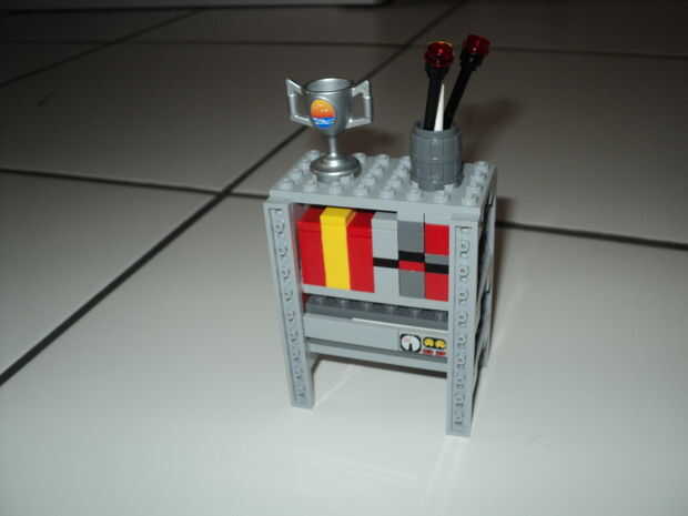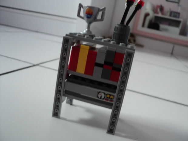 aprender a construir una hermosa librería LEGO junto con algunos libros que se pueden cambiar, una máquina VHS (es vieja, yo sé) y un jarrón de flores