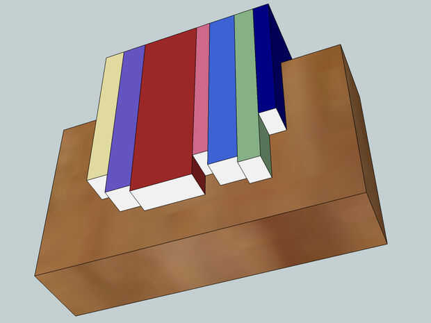 esta librería contiene siete libros a la misma altura, incrustada en un bloque de cedro rojo occidental que fue reciclado de una vieja repisa de la chimenea. Fue inspirado por el genial Mike y de Maaike JUXTAPOSED: religión estante, que vendió por $2500 en una edición limitada de 50. No tengo $2500 de sobra aunque no se había agotado, pero tengo algo de madera y un brillante nuevo Hanon...