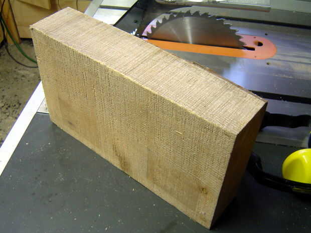 Necesitarás un trozo de tamaño decente de la madera. Yo tengo la mía de algunos amigos que donaron la repisa de la chimenea que arrancó cuando renovar. Usé un sobrante de esto - era un pedazo de roughsawn de cedro rojo occidental aproximadamente 15 "x 8" x 3". Las dimensiones exactas no importan mucho, siempre y cuando sea aproximadamente 6" más de la pila de libros.