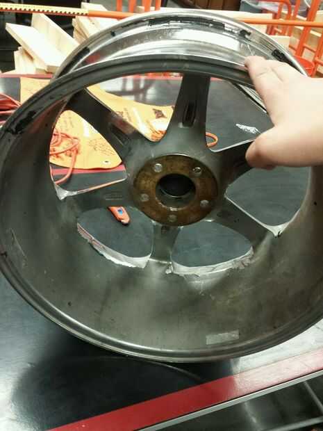 Derek me dijo que Lota tenía un juego de 4 llantas que tenía en su cuarto como decoración de un vehículo que había poseído su padre. Pero sólo estaban sentados en el suelo en una pila contra una pared absorbiendo espacio. Me pidieron para llegar a algún tipo de librería para mostrarles en algo funcional así. Al día siguiente Derek había traído uno de los bordes por lo que he podido conseguir tamaños de dimensión y que me ayude a lluvia de ideas. Poco sabía era que eran llantas de gran tamaño de 22"! Y estaban un poco en el lado corroído/sucio. 1 2 días de mi proyecto pasamos a limpiar las llantas de asfalto alquitrán especificaciones, suciedad, contrapesos de equilibrio y el pegamento que mantuvo encendido, etc.... Limpieza normal solo fue no cortarlo. Tenía que ser creativo.