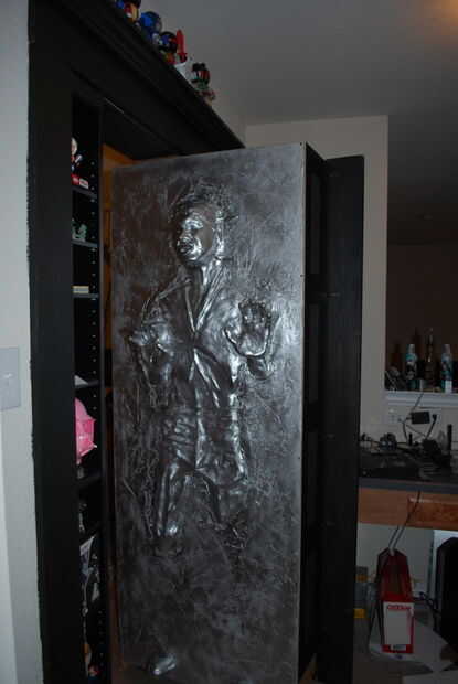 (poco rápido editar aquí, solo para ser claro es $150 no incluyendo Han, que si se trata de una escultura DIY podría ser unos cuantos dólares o un producto personalizado hecho o incluso con licencia podría ser $$$. Yo que añadiendo algunos datos sobre cómo llegar por lo menos los moldes de la cara, como puedes ver en mi muro fuera del teatro)