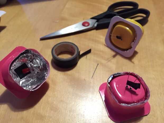4. Ahora coge tu aguja y hacerla caliente con fuego. Haga dos agujeros en el danone para que el LED puede ir a través de ellos. Estar seguro de hacer un poco de espacio entre ellos pero no demasiado.