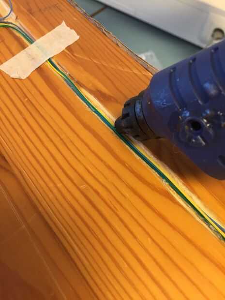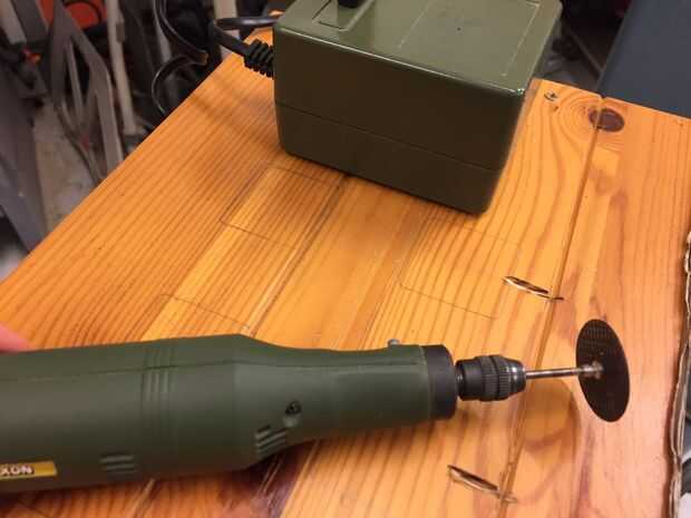 2. vamos a hacer ranuras para ocultar los cables. Esto es muy fácil con la herramienta rotatoria pero un cincel funciona así.