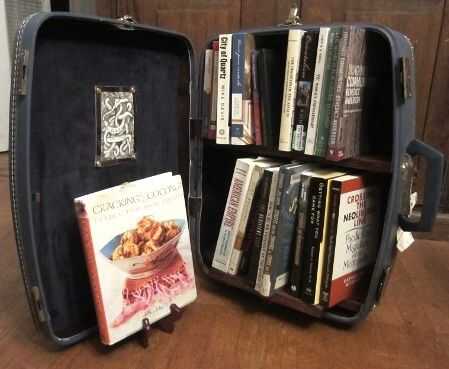 Me estoy mudando a Reino Unido en menos de un mes. Sé que los libros son pesados y saturan y debo unirme a este milenio y conseguir que un e-reader, pero el amor verdadero libros y tener fe que me hará sentir como en casa en mi vivienda dormitorio sin alma de grad-escuela. Con el fin de reclamar mi nuevo espacio rápidamente y limitar mi colección de libros, he creado la librería, una pequeña biblioteca portátil hecha de una maleta vintage, cara de madera.
