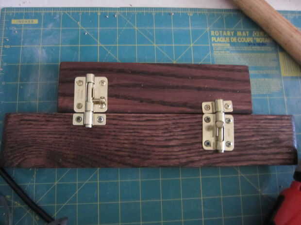 Tenga en cuenta que os adjunto los seguros de perno del barril por lo que se enfrentan a direcciones opuestas. No estoy seguro que esto es necesario, pero es lo que hice. Recuerde los pernos en la parte inferior de los estantes, así boca abajo el lado de la madera cree que parece más atractivo cuando atornille los cierres en la parte posterior.
