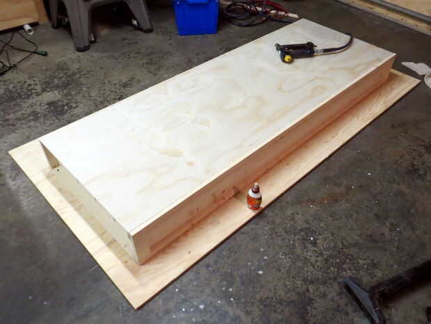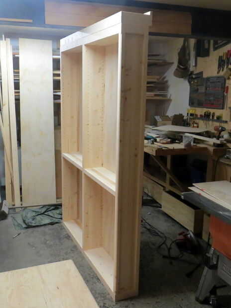 Este es un paso fácil y rápido - cortar el 1/4" madera contrachapada hojas a 726 x 2120 mm, pegamento y clavos en la parte trasera de la librería. Utilicé una pistola de clavos. Llenar los vacíos y la arena todo liso.