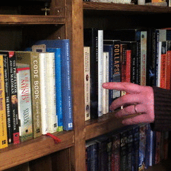 Taladré un agujero pequeño en la parte posterior de la caja detrás del libro, así que pude conectar una cuerda de nylon a la placa de acero para permitir que los ocupantes a abrir la puerta desde dentro. Esta cadena también permite que los ocupantes de la sala cerrar la puerta completamente desde dentro. En cuanto al libro, fui con la opción least-likely-to-be-chosen-for-browsing.