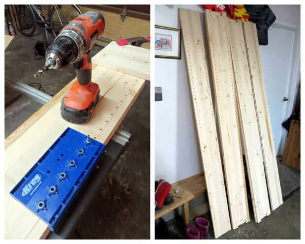 Sólo uno de los estantes de este diseño es fijo; el resto son ajustables. Esto es algo bueno, porque puede amar un espacio particular ahora mismo, pero se puede encontrar en el futuro desea montar una imagen o altavoces o algo, y usted apreciará la flexibilidad. Sobre la misma base, hacer estantes más de lo que crees que necesites. Usé un poco Kreg jig para perforar los agujeros; fácilmente podría hacer su propia plantilla, pero me sentía perezoso. Los estantes ajustables facilitan la librería hasta el final, demasiado, porque puedes mancha/poliuretano ellos por separado y no consiguen en el camino al hacer el caso sí mismo.