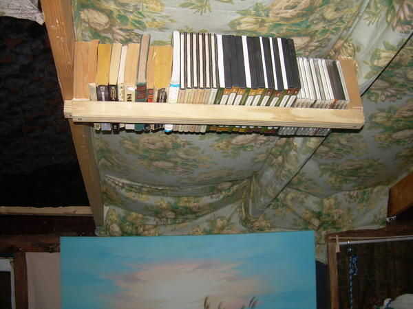 En la encarnación anterior de esta librerías, usé una débil cuerda de amortiguador auxiliar como un sujetalibros, colocado alrededor de las cunas.