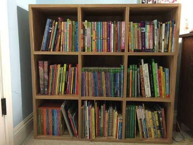 He lijado hasta grano 150 y había cubierto en aceite de tung. Aunque esto es para la habitación de un niño, no quería un acabado poliuretano de prueba de la bala. Quería algo más natural que le mostrara su edad en el tiempo. Quería algo de historia de mi hija para mostrar en él. Había encerado exterior, configurarlo y lleno de libros.