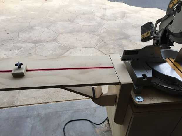 Tengo un inglete vio, pero no tengo un inglete deslizante vio, así que técnicamente que sólo puedo cortar un tablero de 8 pulgadas de ancho. (deslizamiento típicamente ingletes corte 12 pulgadas) Mucha de la madera verdadera en este sitio probablemente sacudiría la cabeza en esto, pero usted puede cortar un tablero de 2/3 el paso con inglete regular, luego dé vuelta sitio encima y justo abajo de la línea de corte y obtener un corte realmente consistente. Si estuviera comprando una nueva Mitra, compraba un inglete bisel deslizante, pero no pude justificar tener una sierra nueva cuando mina todavía funciona bastante bien. También, he construido una tabla para mi sierra que tiene brazos abatible con una pista de aluminio y un bloque de tope en ella. Así que si estoy haciendo repetir cortes, la parada hace muy consistente.