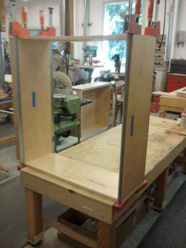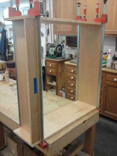 Colocar pegamento de madera en las ranuras en los extremos de la parte superior e inferior. Utilice abrazaderas de barra para garantizar las 4 piezas juntas.