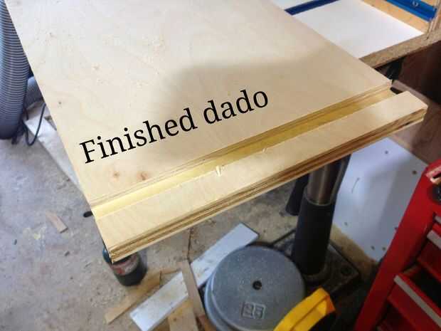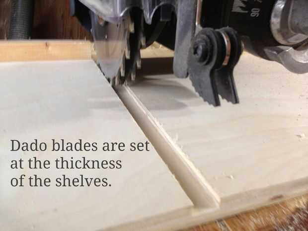 Este paso puede parecer mucho trabajo, pero su realmente muy directo. En primer lugar, los conejos son simplemente mortajas (arboledas) cortadas en el borde de una tabla. Es común para evitar este paso con un empalme simple. Sin embargo, mortajas no son sólo una Unión mucho más fuerte, pero también tienen el beneficio añadido de hacer montaje mucho más fácil. Los estantes se ajusta bien a las mortajas y son fáciles de mantener en 90°. Una hoja de mortajar costará alrededor de $100 en una tienda de mejoras para el hogar. Si eres lo suficientemente paciente, puede hacer los cortes con muchos pases en una hoja estándar. Porque estos estantes son tan altos, usé mi sierra de brazo radial. Estos mismos cortes se pueden hacer con un trineo grande con una sierra de mesa.