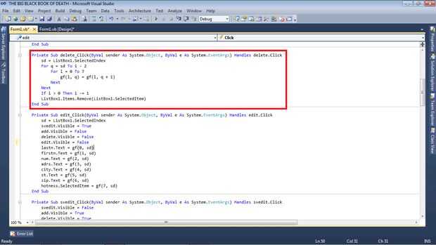 Private Sub delete_Click (ByVal sender como System.Object, ByVal e como System.EventArgs) manijas eliminar. Haga clic en