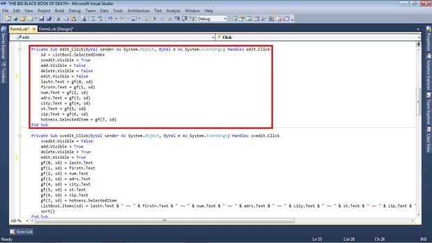 Private Sub edit_Click (ByVal sender como System.Object, ByVal e como System.EventArgs) manijas edición. Haga clic en