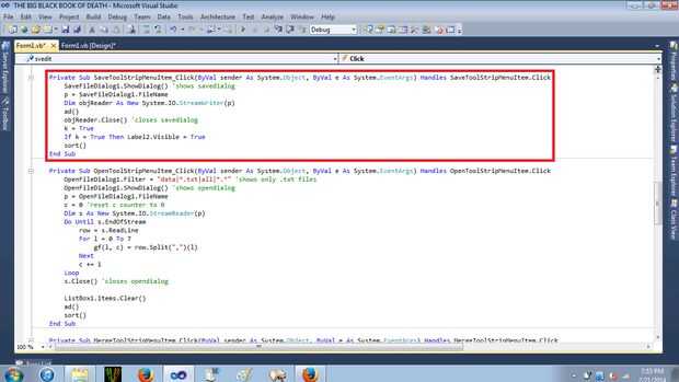 Privada Sub SaveToolStripMenuItem_Click(ByVal sender As System.Object, ByVal e As System.EventArgs) maneja SaveToolStripMenuItem.Click