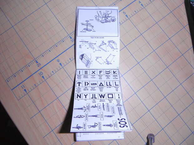 En la pagina 13 son los símbolos para recate aéreo se hacen las formaciones con rocas de los símbolos ahí aparecen para dar mensajes y una guía de movimientos corporales para guiar helicópteros.