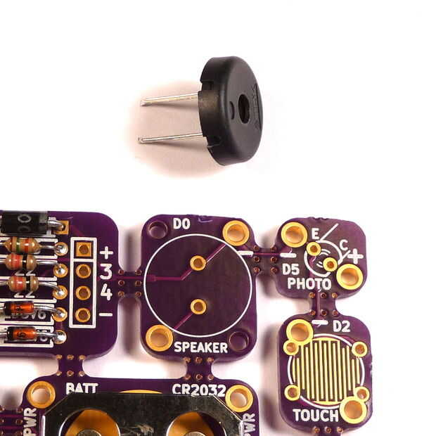 1. El altavoz piezoeléctrico en lugar de la soldadura. El PS1201 piezo no tiene polaridad. Otros tipos pueden.