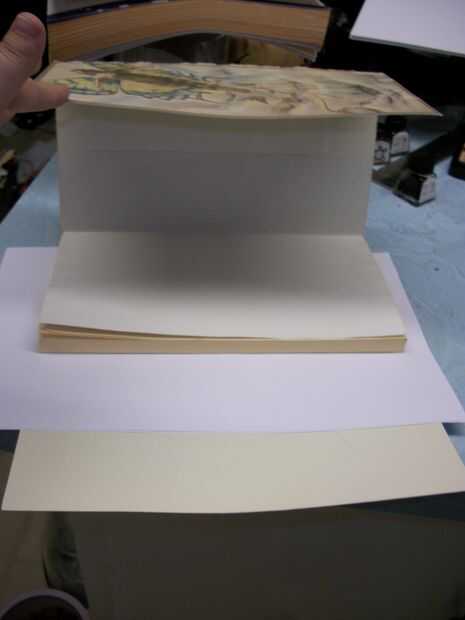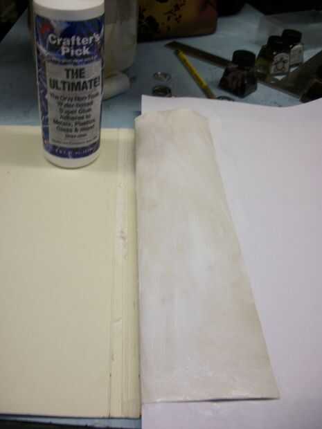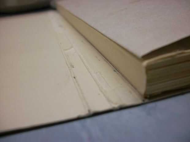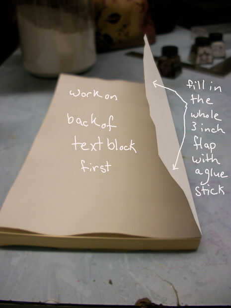 Añadir papel de cera entre la aleta de 3 pulgadas y el bloque de texto en el frente y hacia atrás para evitar las páginas conseguir pegadas. Agregar libros en la parte superior y espere hasta que el pegamento se seca.