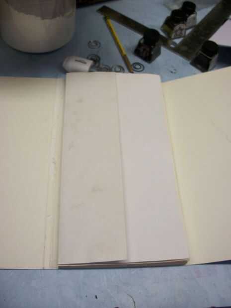 Luego hacer lo mismo con la delantera de 3 pulgadas parte del documento final. La columna vertebral debería verse como un triángulo. Si la columna vertebral es ligeramente más grande que una pulgada, es posible utilizar el espacio más tarde como un compartimento para un bolígrafo o un lápiz.