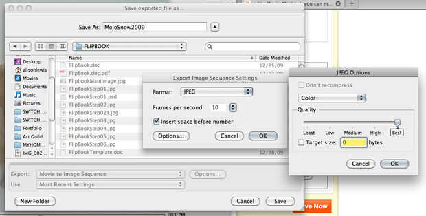 Exportar tu película a una secuencia de imágenes JPEG con la opción de 10 cuadros por segundo. Esto exportará cerca de 90 a 120 imágenes dependiendo de la longitud de la película (en QuickTime seleccionando archivo/exportar para ello). Asegúrese de que las imágenes se exportan con una etiqueta numerada, como 001, 002, 003, etc.... En QuickTime elegir "Secuencia de imágenes" en el cuadro de diálogo Exportar y seleccione "opciones" para seleccionar los 10 Frames por segundo.