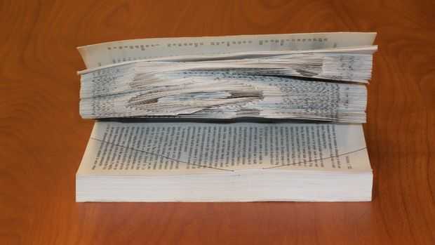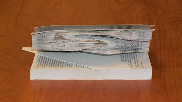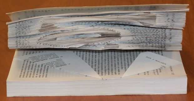 Doblar las esquinas de la página en a lo largo de las marcas. Primera hoja de hecho, sólo unos cientos más para ir. Repita para cada hoja, si pierdes tu look simple lugar en el número de página se encuentra en y buscar en la tabla de excel. Continúe hasta que todas las páginas se acaban. Ajustar holgura del libro hasta que la imagen se ve bien.