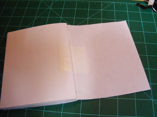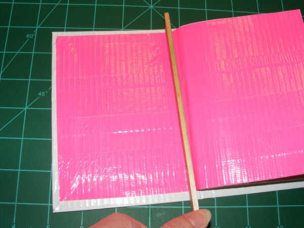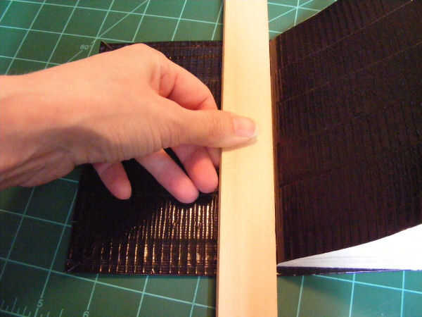 Utilizar una regla o escuadra para asegurarse de que la cinta se adhiere a la junta entre la tapa y las páginas. Lisa la flyleaf.