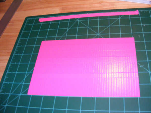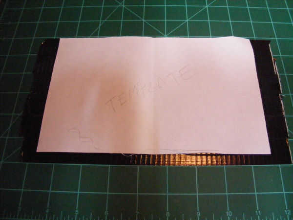 Colocar una tira de cinta adhesiva más de la plantilla. Se superponen la cinta 1/4" a 1/2" hasta que haya una hoja ligeramente más grande que la plantilla.