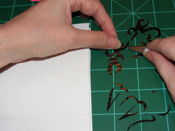 Use un cuchillo Xacto para cortar el diseño y tire con cuidado la cinta sobrante, a partir de la capa inferior.
