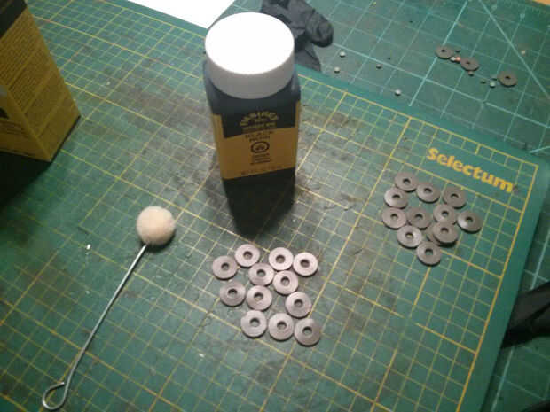 Finalmente utilicé algún tinte de cuero negro Fiebings para oscurecer la mitad de las piezas. También decidí teñir el marcador sí mismo, pero esto no es un paso necesario.