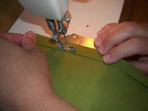 Lados largos: sobre la parte posterior de la tela, doblez en 1/2" de tela, hierro, doble más 1/2" otra vez y hierro. Coser por el borde para crear un dobladillo. Repita para el otro borde largo de la tela. Verificar dos veces su anchura total (32" para los míos) después de planchar, pero antes de coser el segundo lado.