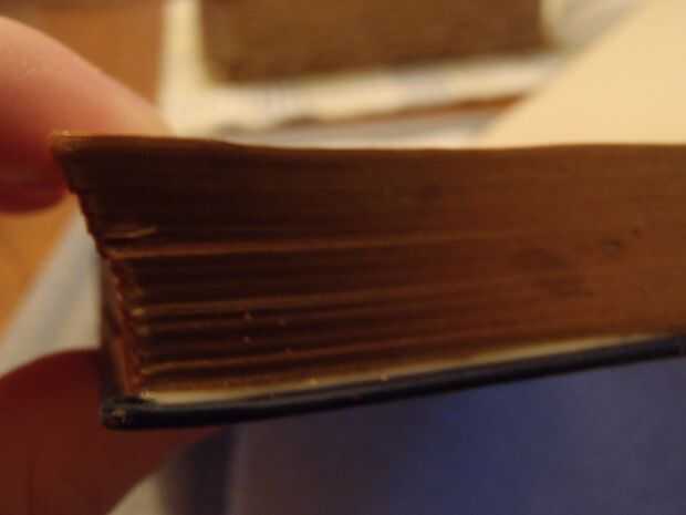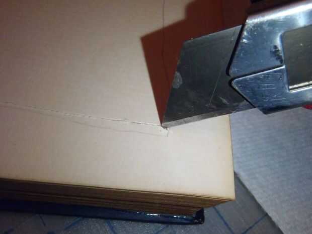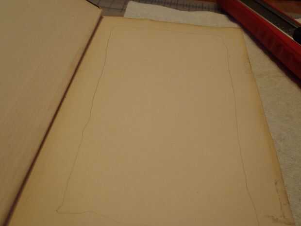 Después de veinte minutos, las páginas deben permanecer juntos en un bloque y este aspecto. Dibuje un rectángulo alrededor de la primera página, de un centímetro de los bordes, luego corte en las líneas con el cuchillo.