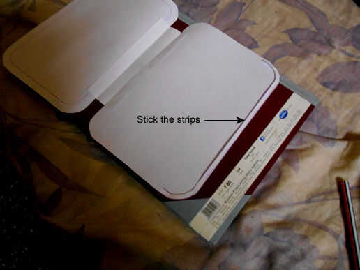 Pegar las tiras de cartón en la cubierta inferior. Capa para formar la caja como extrusión. Puede utilizar pegamento de papel o pegamento caliente para pegar las tiras. Asegúrese de que la tableta quede mientras pegando las tiras.