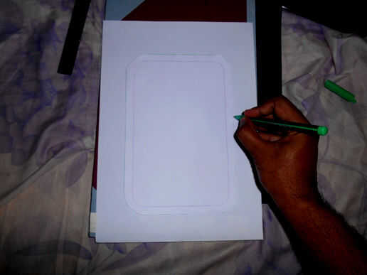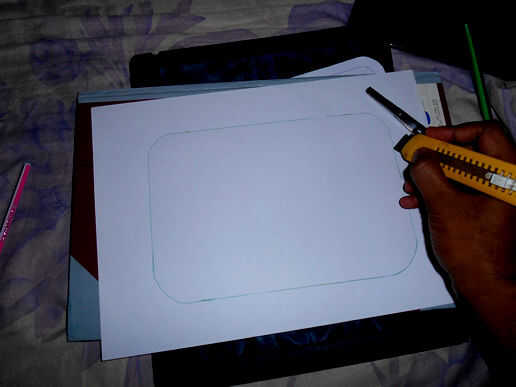 Como método abreviado, utilice el recorte de la cubierta frontal para marcar las dimensiones de la cubierta posterior. Colocar el recorte sobre la segunda hoja de cartón y marque sus dimensiones. Luego corte a lo largo de la frontera para obtener una cubierta posterior idéntica.