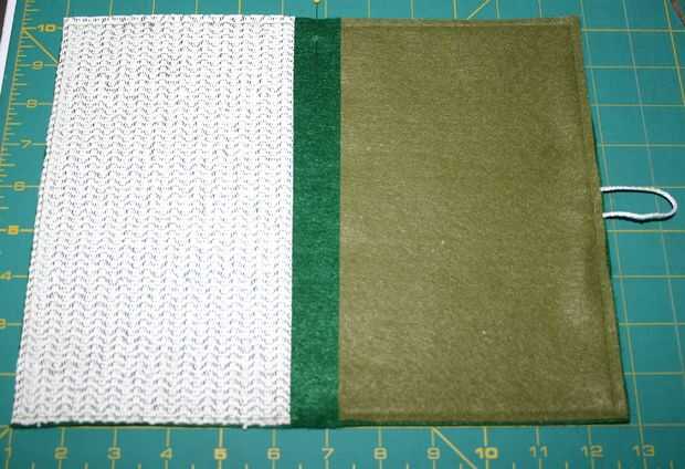 Los sostenedores de herramienta: utilizar elástico cosido a la página antes de incorporar en el libro. Si la caída de tijeras, coloque una banda de goma más grande a través de un agujero del dedo entonces estirarlo hacia abajo y sobre el final de la corte que la ranura en que se ha insertado Ver la foto en este paso.