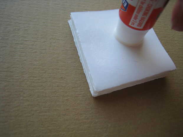 Coloque una banda elástica alrededor del exterior. Deje que el pegamento secado por un minuto o tan. También se puede definir bajo algunos libros para descansar mientras que limpia encima de.