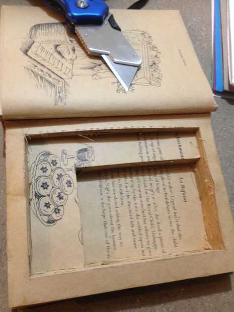 Corte las páginas necesarias para adaptarse a los componentes de la tarjeta. Quería un ajuste apretado para los míos y asegúrese de que tener espacio para el elf, por lo que he quitado cerca de un tercio de las páginas cortaron el espacio para los componentes.