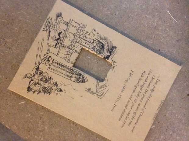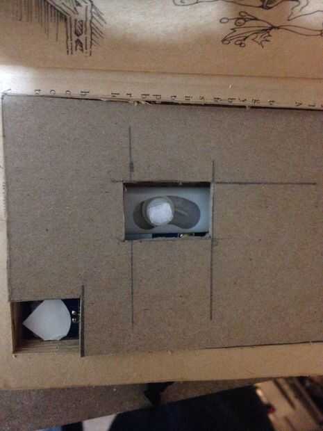 Luego, tomé una pieza de card stock y medida donde estará el brazo del motor y el interruptor. Los recorte y había pegado a una de las páginas guardadas a él. Entonces corte la abertura para el brazo del motor. He dejado la página sobre el interruptor para disimular, creo que esto se ve mejor así.