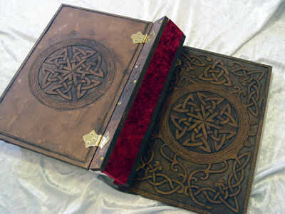 este es uno de mis últimos libros. Se hace del MDF, es grabado con una dremel y manchado con pintura acrílica y aceite de linaza. El diseño se basa en céltico knotworki el libro tiene 150 hojas de papel (lados de botrh 300). El interior está forrado